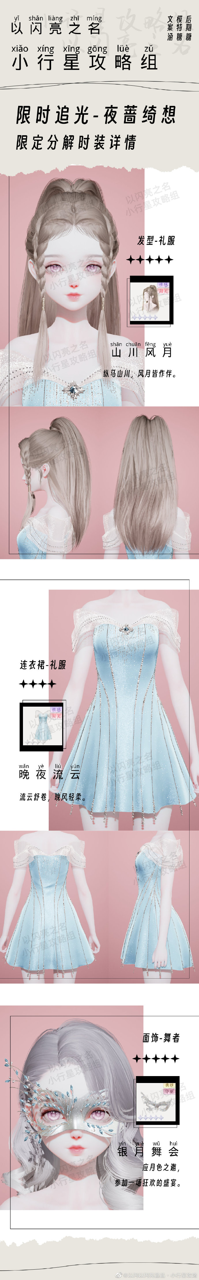 五星发型-山川风月、四星连衣裙-晚夜流云、五星面饰-银月舞会