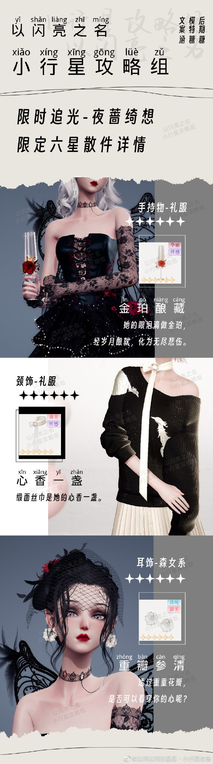 本期限时追光:【夜蔷绮想】(2023/5/25-6/14) 【6星限定散件】: 颈饰-心香一盏、手持物-金珀酿藏、耳饰-重瓣参清
