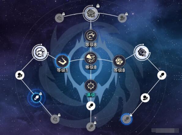 遗器推荐【铁卫4件套】+【仙舟两件套】 【躯干】和【球】主词条选择【生命值】 【脚部】选择【速度】 【绳子】选择【充能】 光锥推荐【雨一直下】、【新手任务开始前】 天赋加点3个8如下图所示,点亮效果命中即可 70级已经很恐怖了,无需突破也无需升到80级。