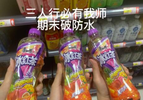 梗由来: 热带风味冰红茶是考试周破防指定饮料,被大家调侃为考试周圣水。 喝完之后会让被考试周摧残的内心得到一丝安慰。 出自经典老番up主向前的赵发布的《考试周破防》。 梗介绍: 视频中UP主吐槽不合理的考试周安排,引起了大家的共鸣,成为了大学生们考试周前激励自己的圣经。 UP主在吐槽的过程中几近破防,但是突然画风一转,拿出了热带风味冰红茶出来品鉴,并表示非常好喝。 因为十分喜感,热带风味冰红茶也成了考试周的标志性饮料,以及后面出现的糕点,被大家调侃为考试周指定饮食搭配,热带风味冰红茶配泸溪河甜了吧唧的糕点 每到考试周各大高校的热带风味冰红茶都会被抢空,也因此有了一种信念感,在同一时间共饮热带风味冰红茶的大学生都在陪你奋战考试周,热带风味冰红茶已经成为了一种精神图腾,成为了考试周的周边产品。 热带冰红茶神会抚慰每一个因考试周而破防的心灵。