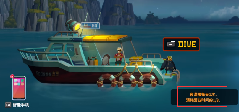1、夜潜每天只能一次,一次会消耗1/3的营业时间。