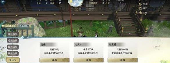 16、金明池捞物,选第一个,概率成功金钱+17777,快乐+5。