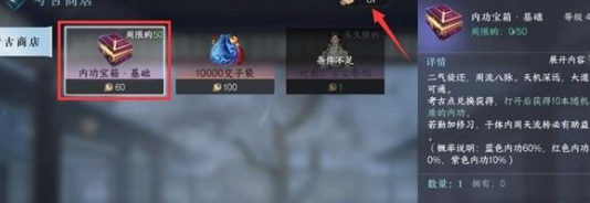 风云商店。 点击风云令先换 随等级开放的装备宝匣:红色10风云令,紫色30风云令! 内功宝箱:每周4个,480风云令 技能残页:每周10个,1500风云令 百炼令:每周40个,1200风云令 60~69紫装宝匣:每周1个,300风云令 天外陨铁:每周20个,1800风云令 静息凝丹:每周30个,900风云令 兰溪解玉砂:每周30个,600风云令 寻侠贴:每周3个,900风云令 合计可以获取7680风云令 风云商店-吉运签: 吉运签可以得到装备/外观,可以留着开舞阳城;