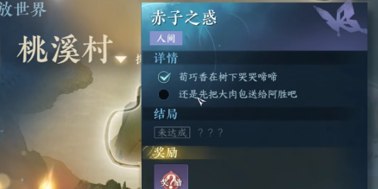1、首先我们需要来到桃溪村上述的位置找到荀巧香进行对话,对话过程中我们需要询问【他喜欢吃什么】再选择【他喜欢玩什么】。