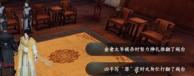 4、调查金老太爷的尸体,选择第一个选项,继续调查砚台,选择第二个选项;