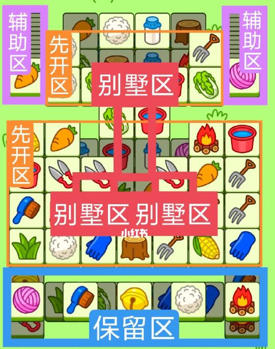 3.必要时可以用紫色盲盒区辅助消除,盲盒区后期不用留太多,留几张备用即可。