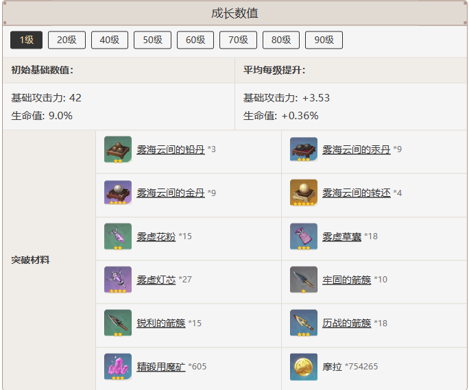 成长数值一览