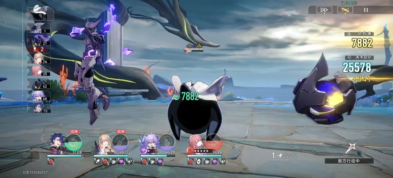 第三折: 本折关键词为:持续伤害 (算是提前感受卡夫卡的dot流) 本折buff是持续伤害提高,消灭补满后分数提高、全队施加持续伤害。