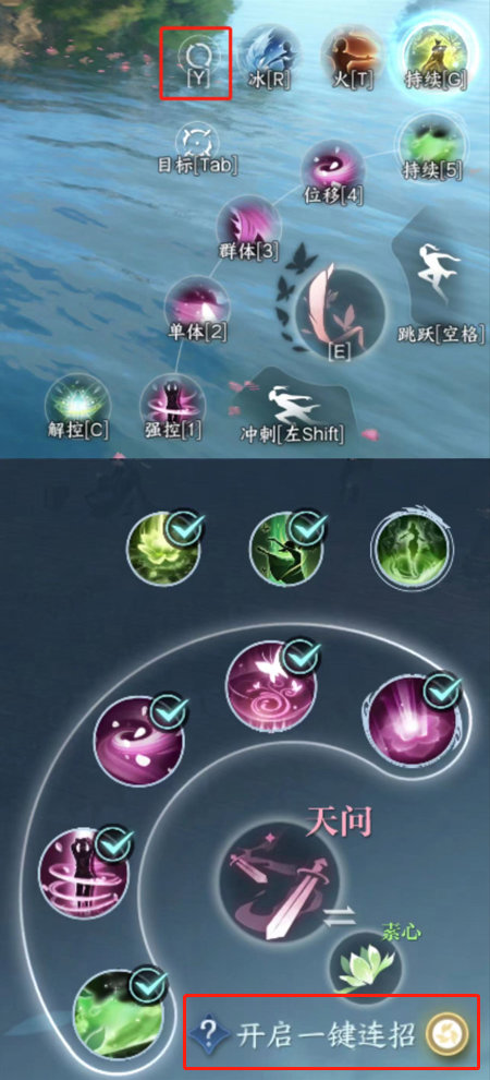 3、开启一键连招,长按三秒以上,就能够挂机自动使用技能,提升熟练度和战力了。