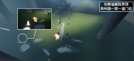 在雨林图一大门之前的石碑前光圈处打坐并留言