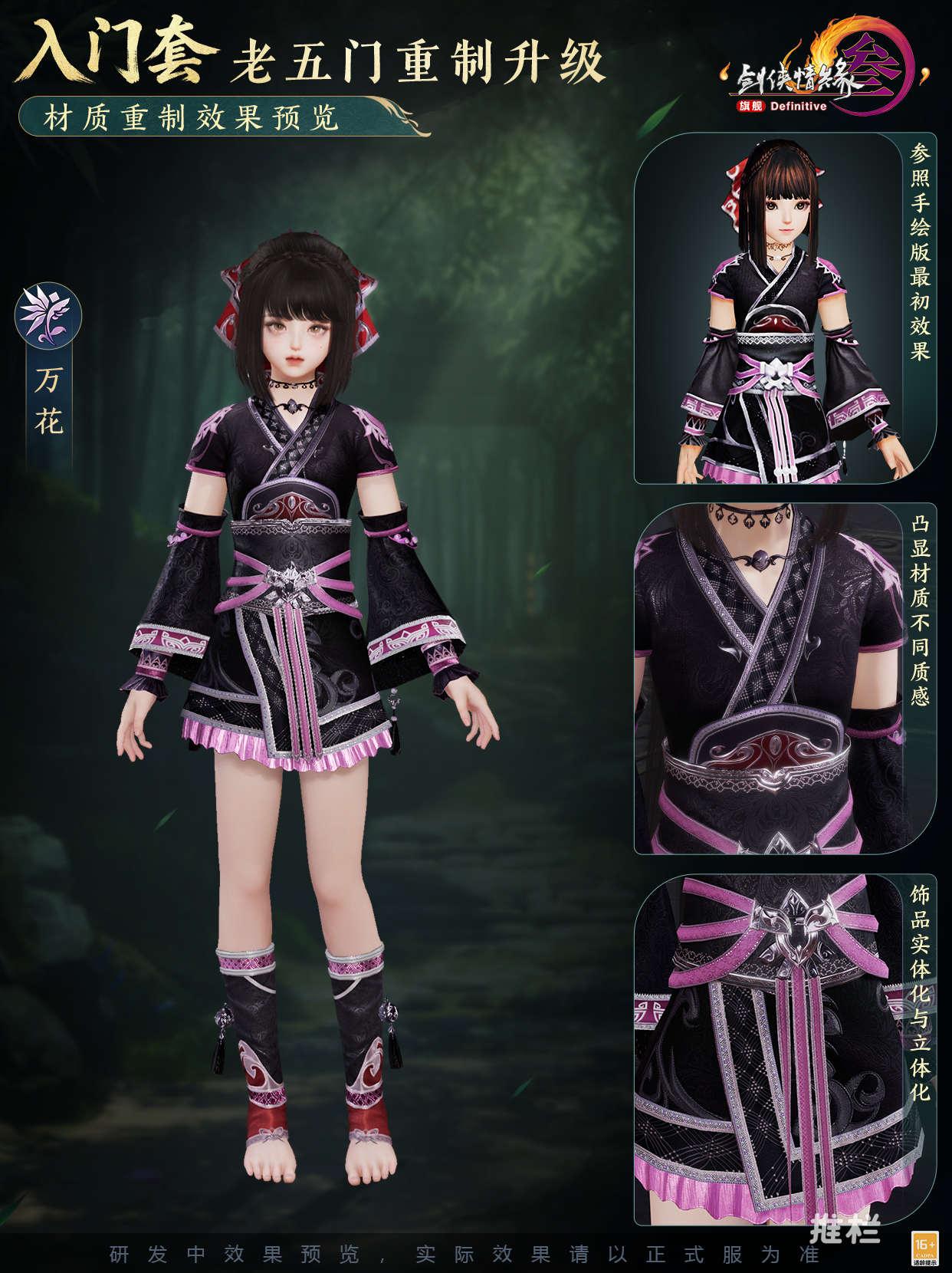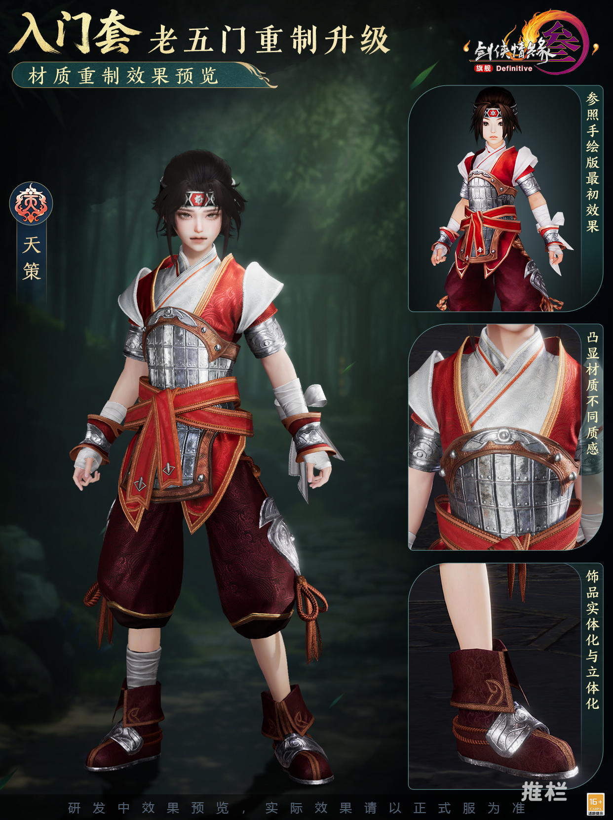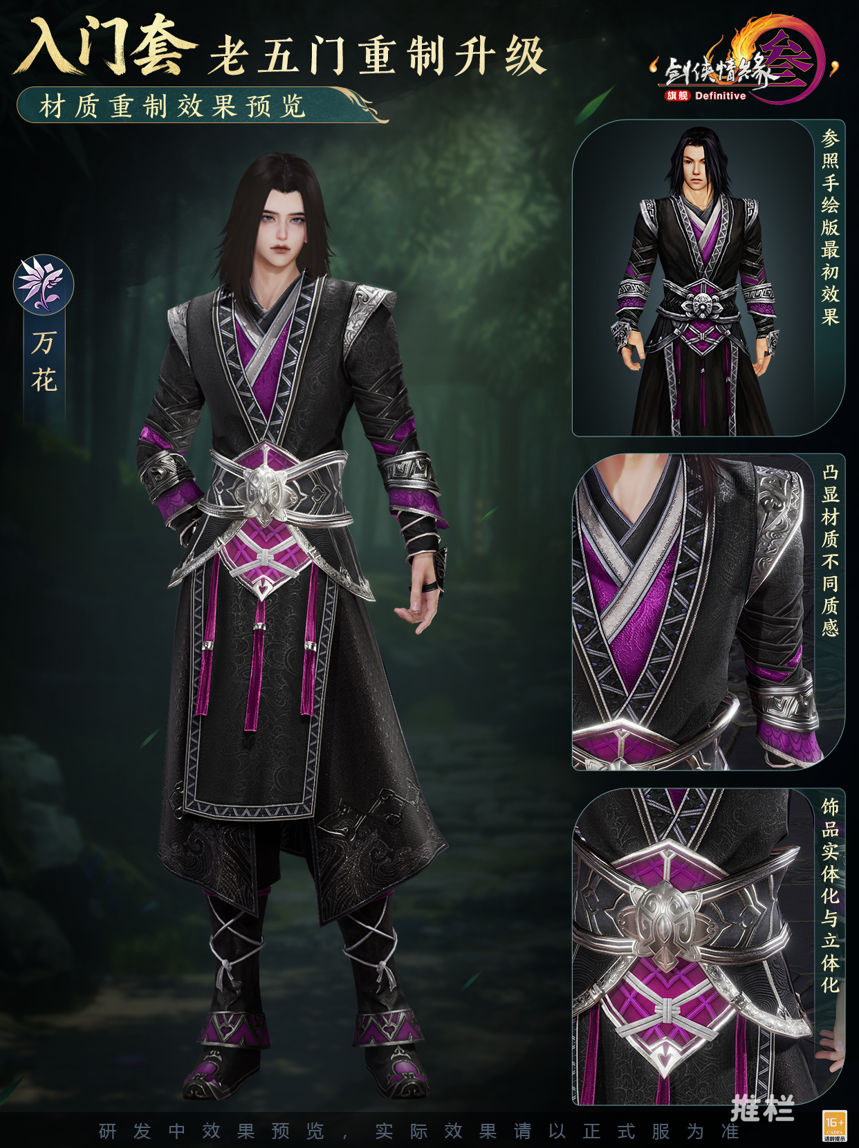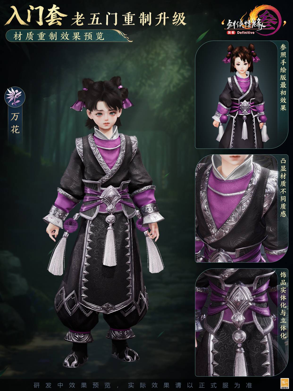 如果说校服是门派归属感的具象化体现,那么入门套则是侠士们初入武林、拜入师门的珍贵纪念。作为最早登场的一批校服,老五门的入门套已然陪伴我们度过十七载春秋,见证许多侠士从萌新到大侠的蜕变,也承载了许多人炽热的江湖梦。现如今,在材质不断迭代的当下也迎来升级,重新焕发鲜活的表现力!
