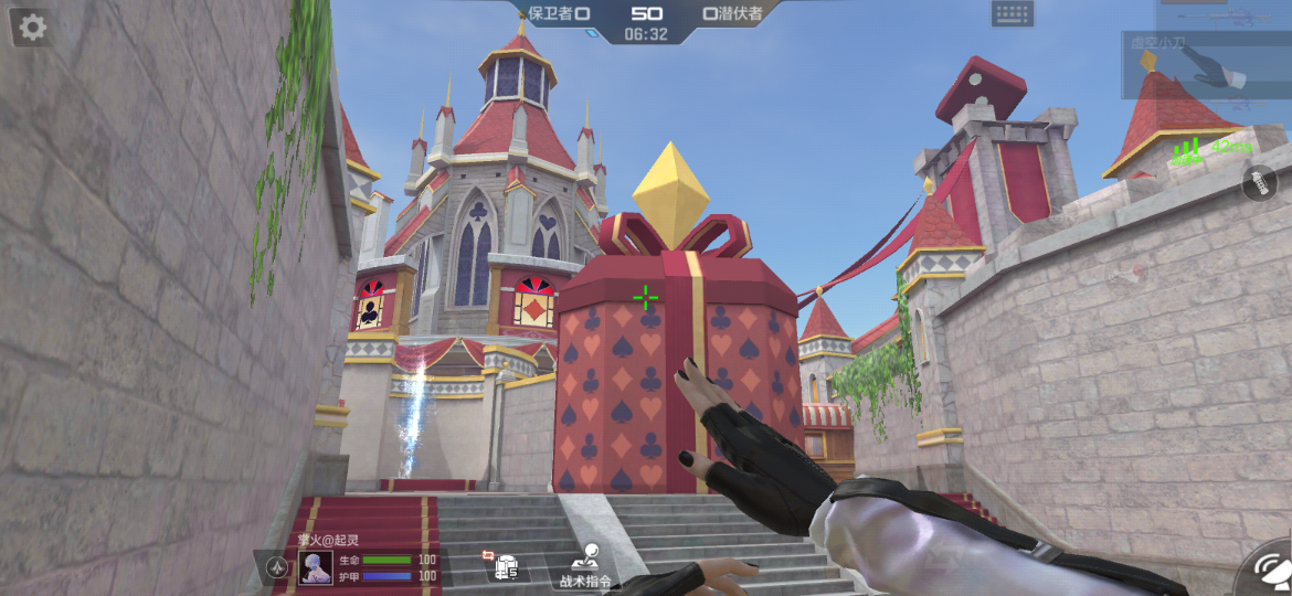 由于幸运之轮基本上是一张对称翻转型构造的地图,所以我们就不多介绍潜伏者复活点了。你只需要记住,保卫者复活点门口的建筑是礼物盒,潜伏者门口的建筑是巨型“梅花”标志。